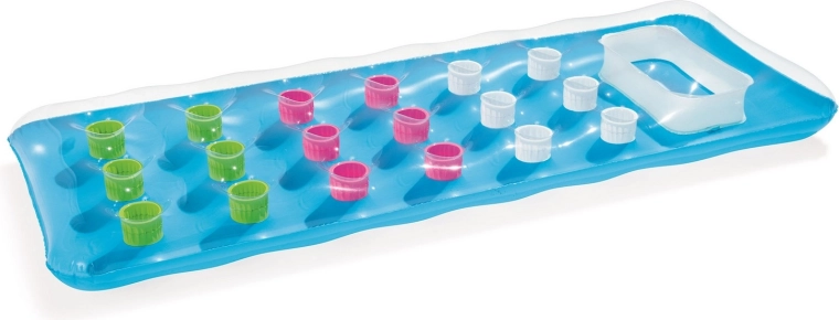 Het luchtbed is gemaakt van duurzaam PVC dat bestand is tegen zomerse waterpret bij het zwembad én op het strand. Het opblaasbare kussen biedt comfortabele hoofdbesteuning, terwijl de I‑beam‑kamerconstructie zorgt voor stevigheid en comfort. In de verpakking vind je ook een reparatiepleister voor het snel verhelpen van kleine ongelukjes.