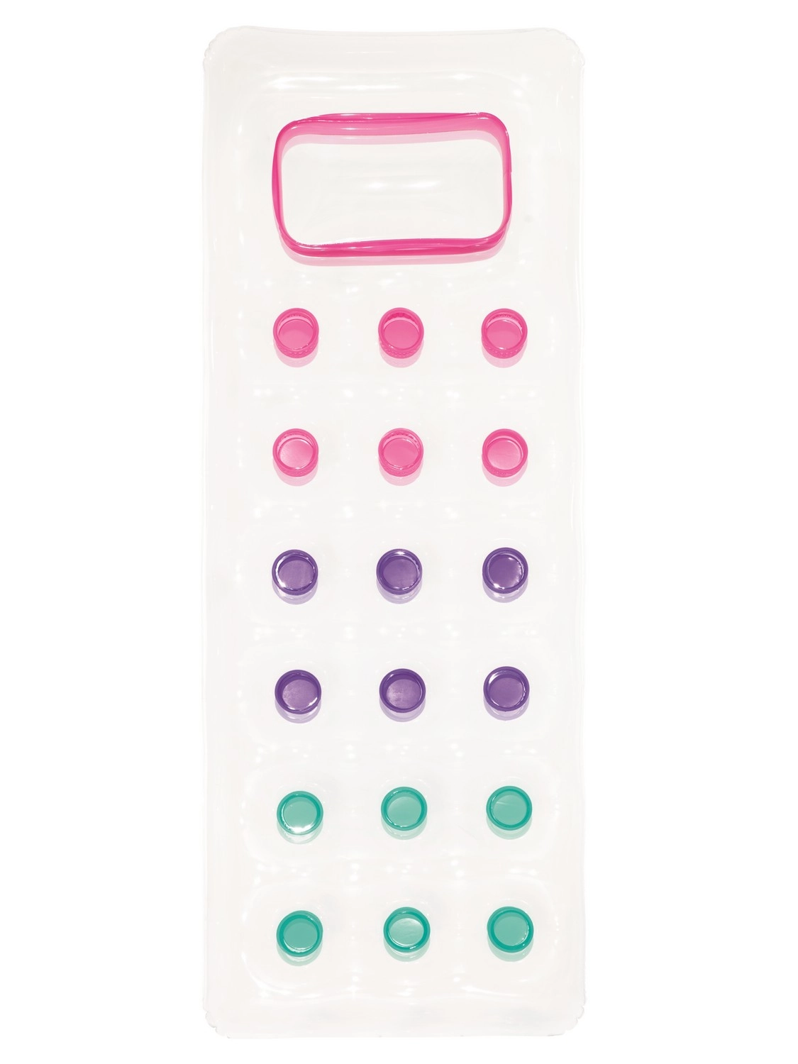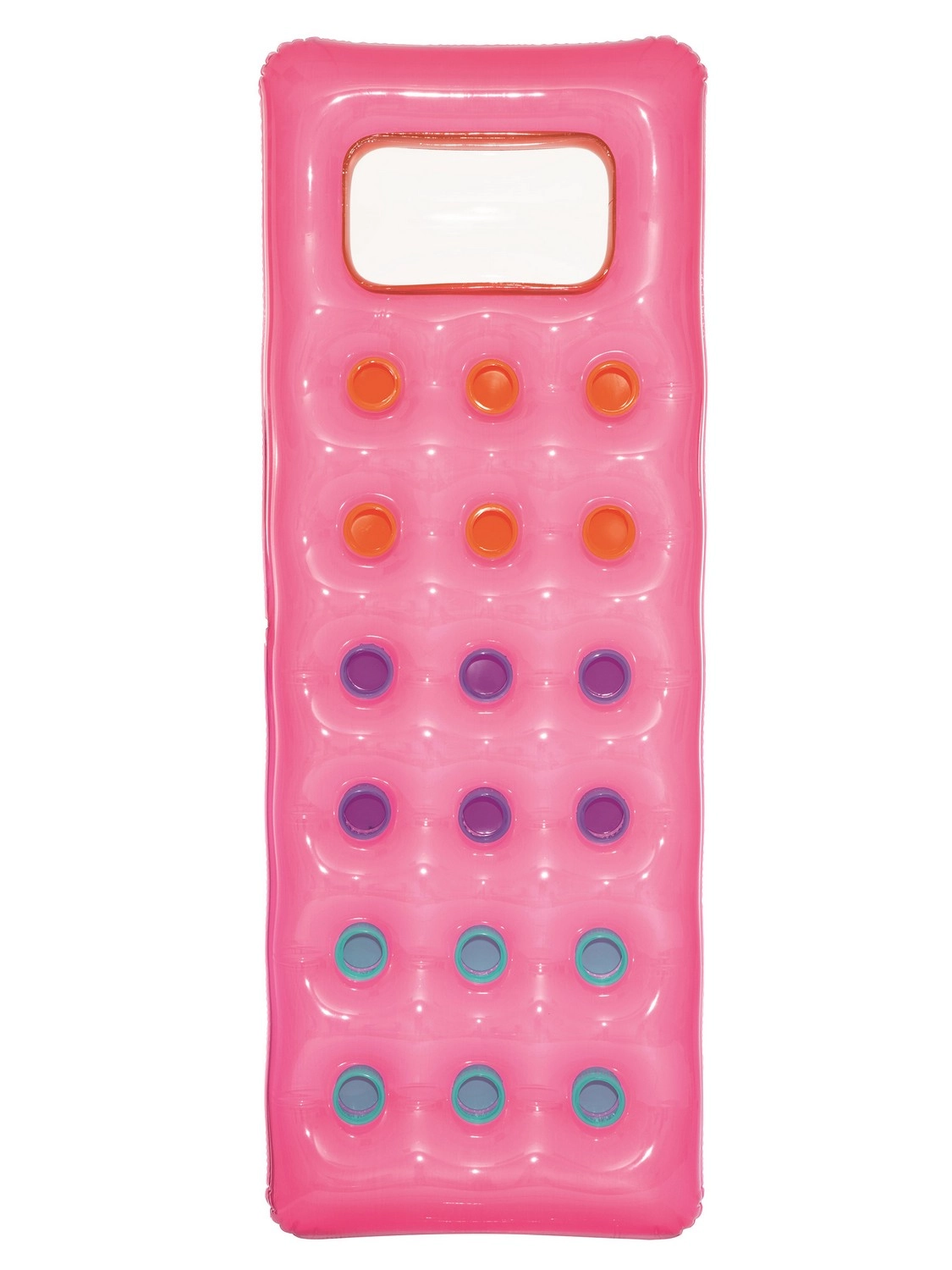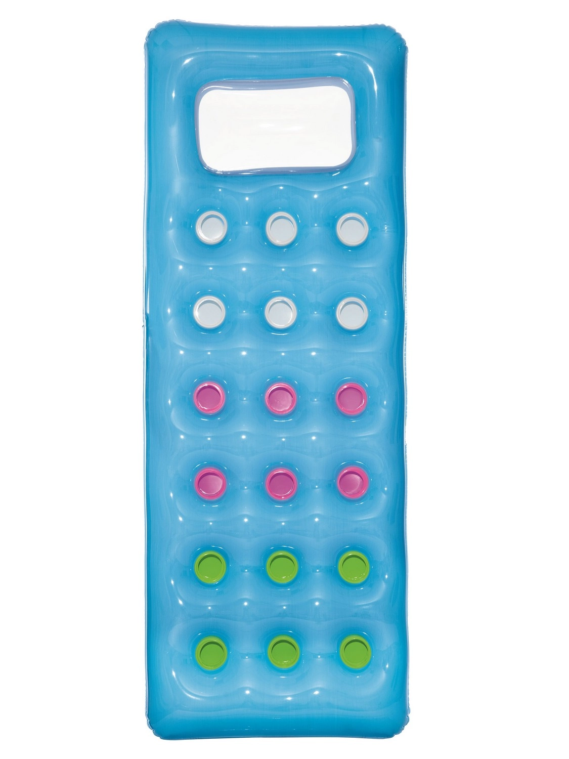 Geniet ten volle van de zomer met dit comfortabele opblaasbare waterluchtbed. Dankzij het transparante kijkvenster in het kussen kun je onder het wateroppervlak kijken, terwijl de gekleurde kamers voor aangename vering en stabiliteit zorgen. Het duurzame PVC‑materiaal, de praktische hoofdbesteuning en de maximale draagkracht van 90 kg maken dit luchtbed ideaal voor aan het zwembad én op het strand. Inclusief reparatiepleister.