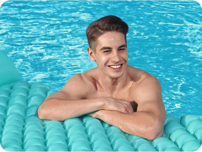 Het duurzame PVC-materiaal is onderhoudsvriendelijk, de matras is snel op te blazen en na het laten ontsnappen van de lucht rol je hem eenvoudig op tot een compact formaat – ideaal voor op reis. Het maximale draagvermogen van 90 kg garandeert veilig en stabiel gebruik tijdens zomerse relaxmomenten.