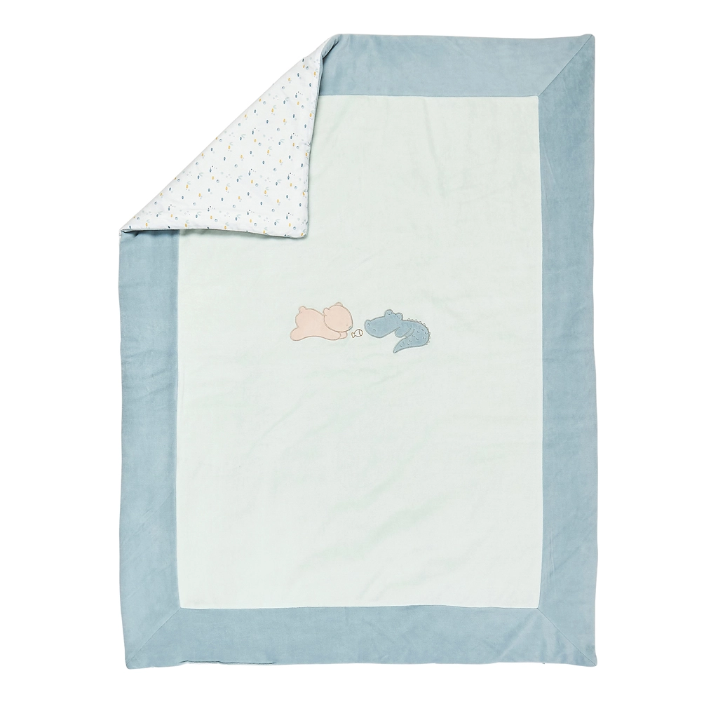 Uitzonderlijk zachte en aangename dubbelzijdige katoenen deken met afmeting 135 × 100 cm, ideaal om toe te dekken, warmte vast te houden en knuffelen met je baby. Biedt een subtiel tweekleurig design, is veelzijdig en eenvoudig te onderhouden – machinewasbaar op 30 °C.