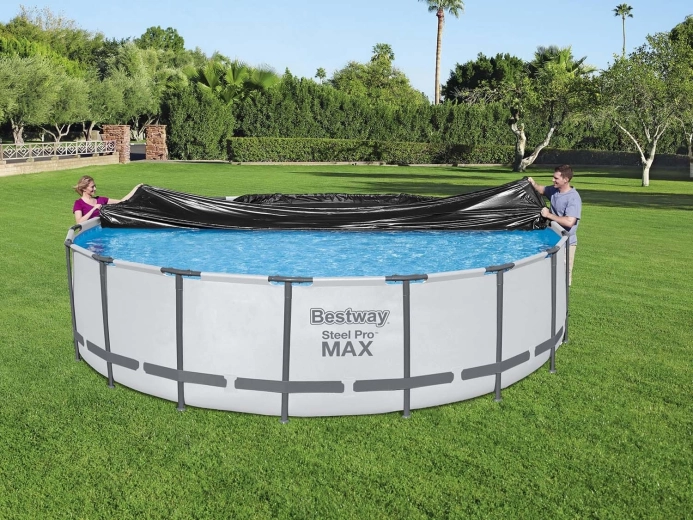 Het BESTWAY 58039 afdekzeil is ontworpen voor framezwembaden met een diameter van 549 cm en biedt een eenvoudige en effectieve manier om het water langer schoon te houden. Dankzij het duurzame PE-materiaal voorkomt het betrouwbaar dat bladeren, pollen en ander vuil binnendringen en vermindert het bovendien de waterverdamping.