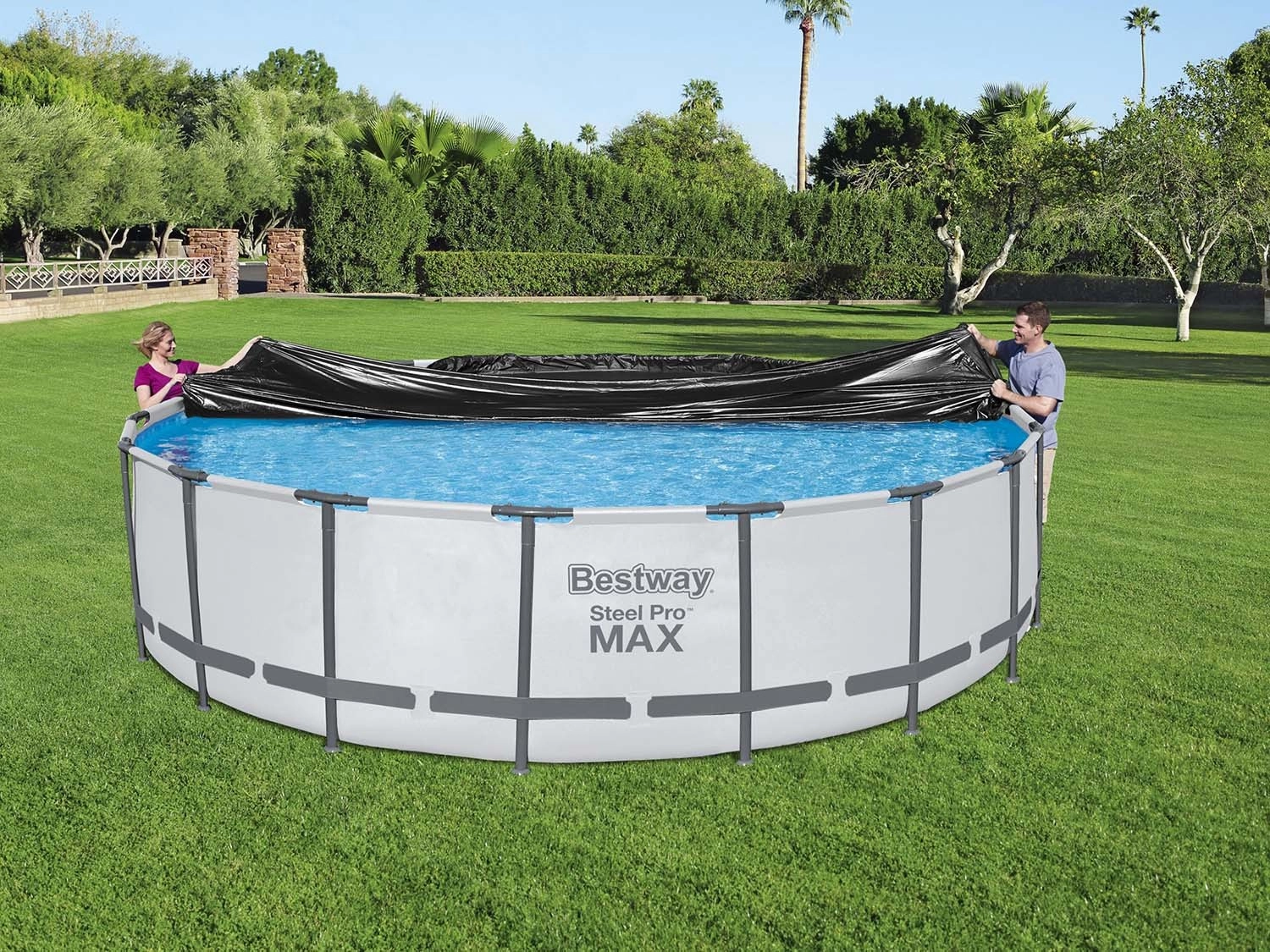 Dek het zwembad af en voorkom dat bladeren, insecten en stof naar binnen vallen. Het water blijft langer schoon en klaar om in te zwemmen.