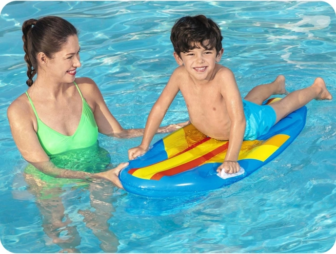 Het Bestway opblaasbord is licht, compact en ideaal voor kinderlijke waterpret. De stevige vinylconstructie met langsgerichte kanalen verhoogt stabiliteit en comfort, terwijl twee geïntegreerde handgrepen het vasthouden en dragen vergemakkelijken. Een uitstekende keuze voor bij het zwembad of op vakantie.