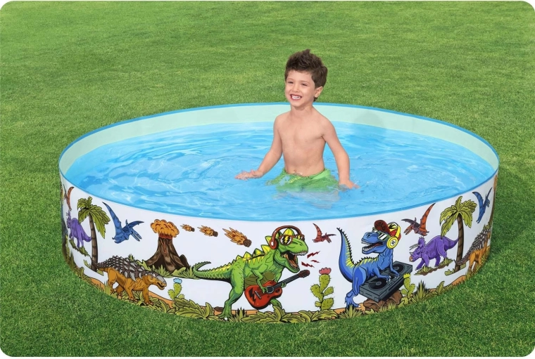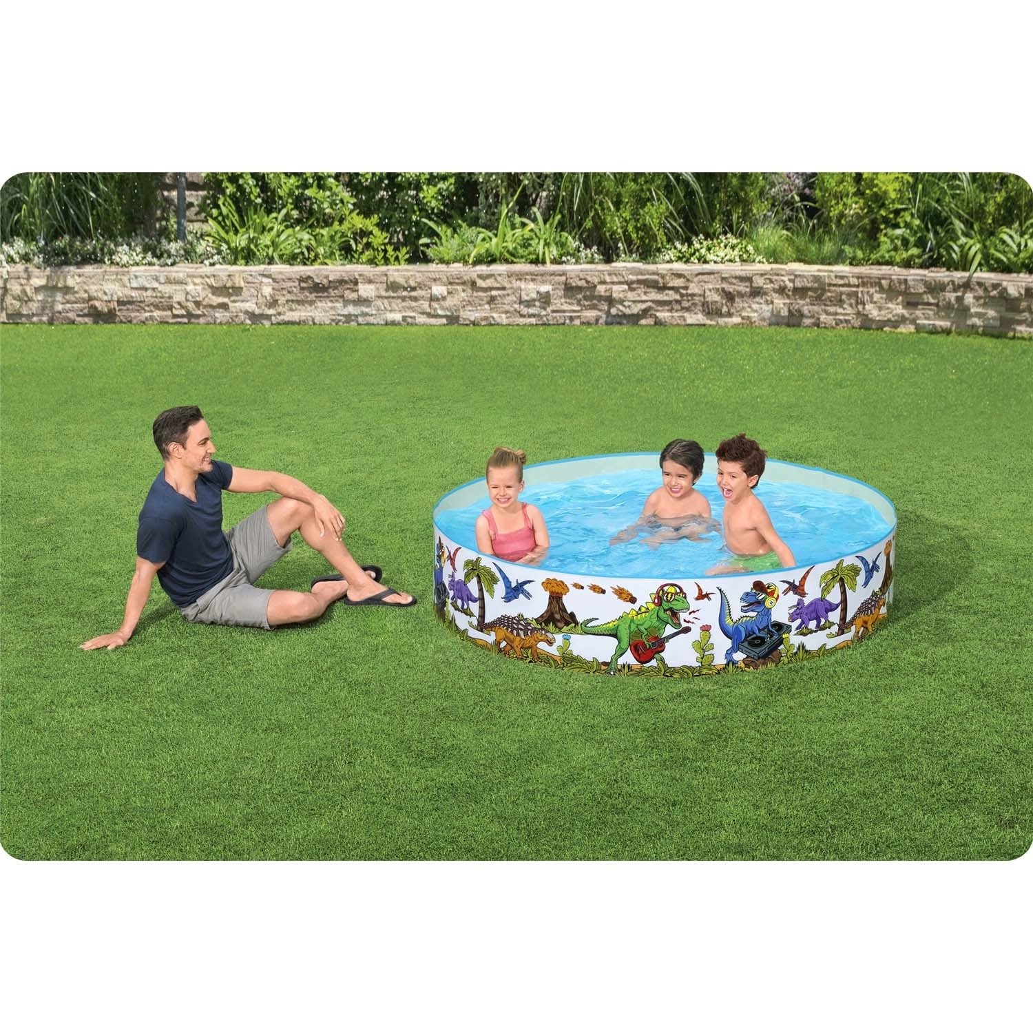 Het schattige Bestway kinderzwembadje met dinosaurusprint is een ideale keuze voor de tuin of het terras. Dankzij de diameter van 183 cm biedt het voldoende ruimte voor broertjes, zusjes en vriendjes, terwijl het lage profiel kinderen een veilige instap en speels waterplezier geeft.