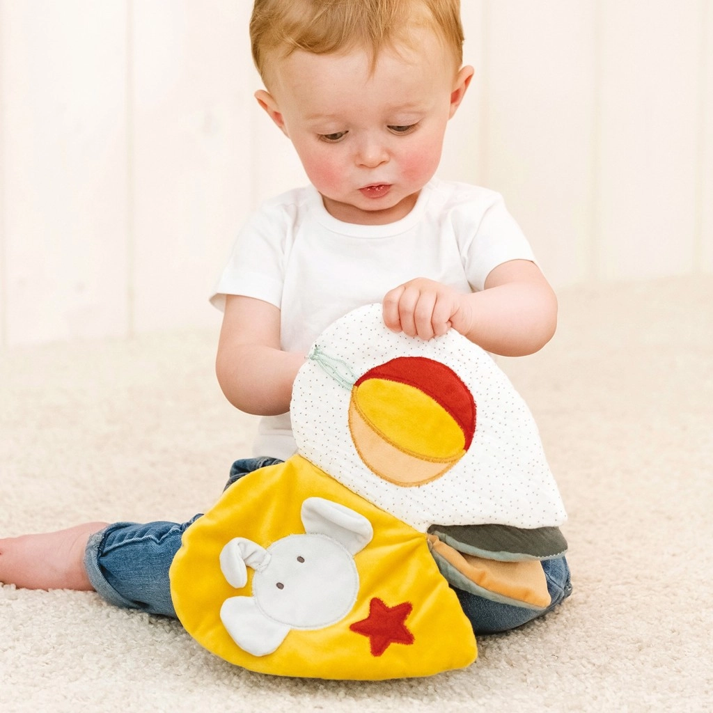 Zachte stoffen, reliëfs en lintjes bieden rijke tactiele prikkels en ondersteunen de ontwikkeling van de zintuigen en de concentratie.