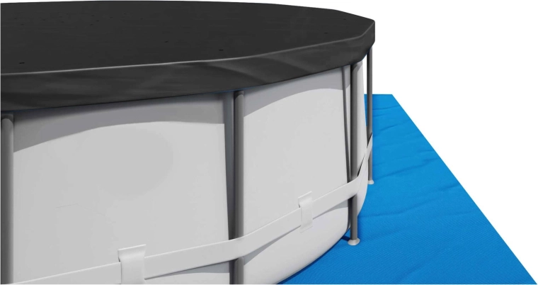 Een drijvende dispenser, multitabletten, schepnet en thermometer maken het onderhoud eenvoudig. Het afdekzeil en de ondervloer beschermen zowel het water als de bodem van het zwembad.