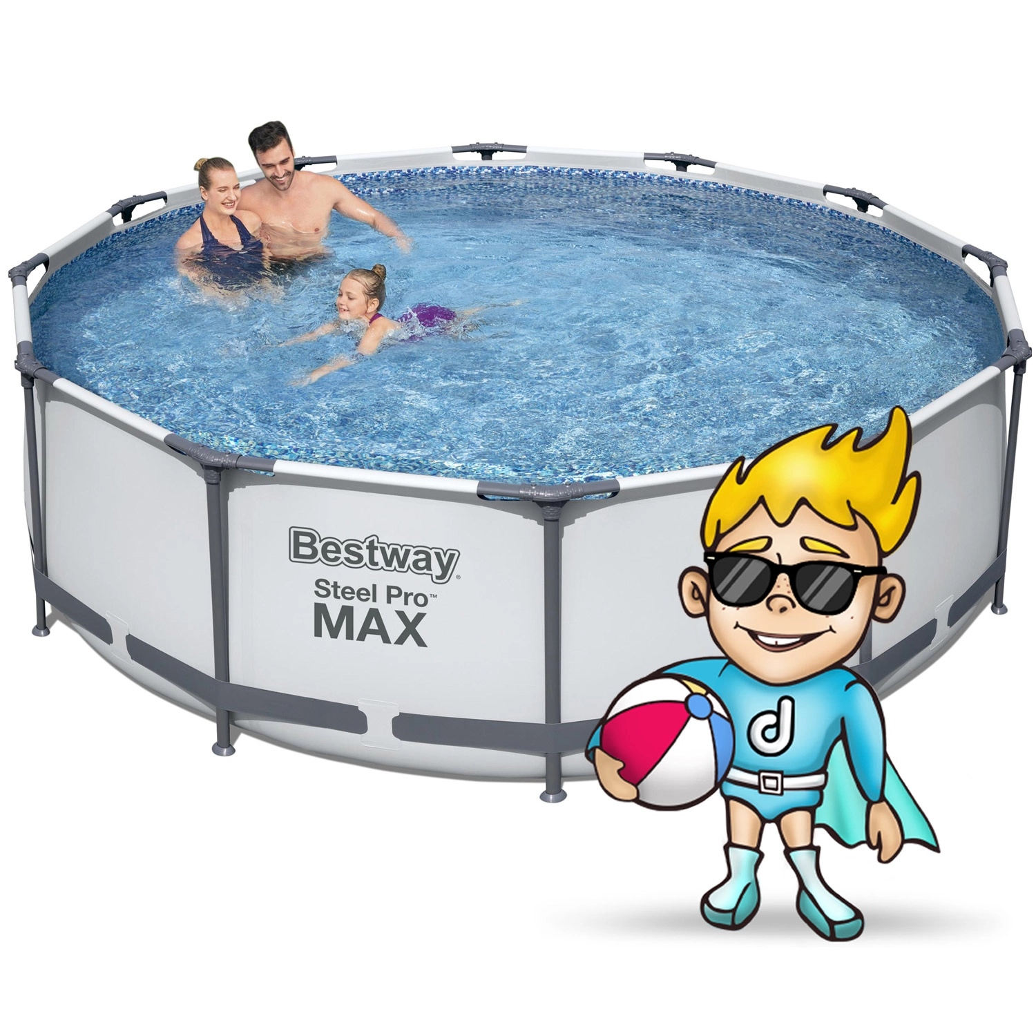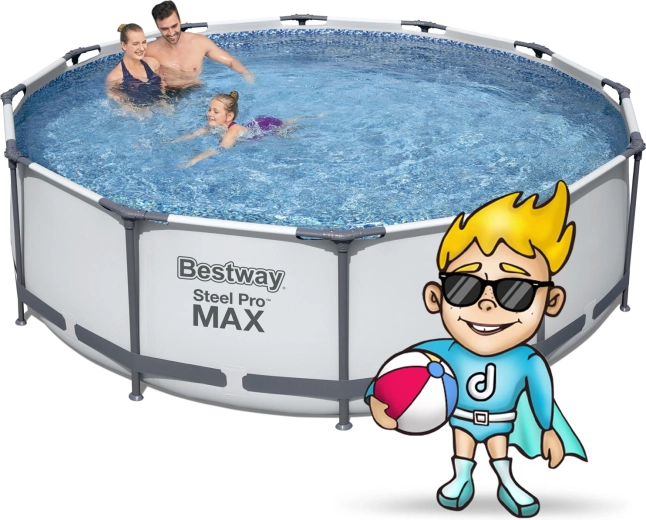 Installatie is uiterst eenvoudig: leg de liner uit, monteer de constructie zonder gereedschap en vul met water. De praktische veiligheidsladder met afneembare treden voorkomt ongewenste toegang door kinderen, het afdekzeil beschermt tegen vuil en de ondervloer isoleert de bodem van het zwembad van de ondergrond. De onderhoudsset met drijvende dispenser, multitabletten en schepnet houdt het water de hele zomer kristalhelder.