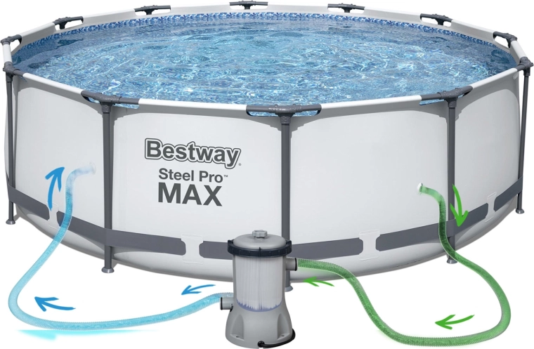 Geniet optimaal van de zomer met het BESTWAY tuinzwembad met een diameter van 366 cm en een hoogte van 100 cm in een royale 17-in-1 set. De stabiele stalen constructie, duurzame 3-laagse liner en complete accessoires zorgen voor comfortabel zwemmen en eenvoudig onderhoud. Inclusief pomp met filter, veiligheidsladder, afdekzeil, ondervloer, chloordispenser, multitabletten, thermometer en andere accessoires voor schoon water, veilige toegang en snelle montage zonder gereedschap.