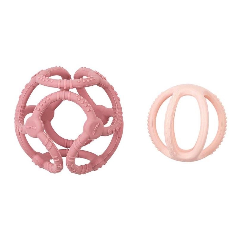 De combinatie van een grotere bal met een diameter van 10 cm en een kleinere van 7 cm biedt gevarieerd speelplezier en versterkt de fijne motoriek. Veilige BPA-vrije siliconen zijn duurzaam, hygiënisch en eenvoudig te reinigen met zeep en water. Voor ruimtebesparing kunnen de balletjes in elkaar worden geschoven, zodat je het bijtspeeltje gemakkelijk overal mee naartoe neemt.