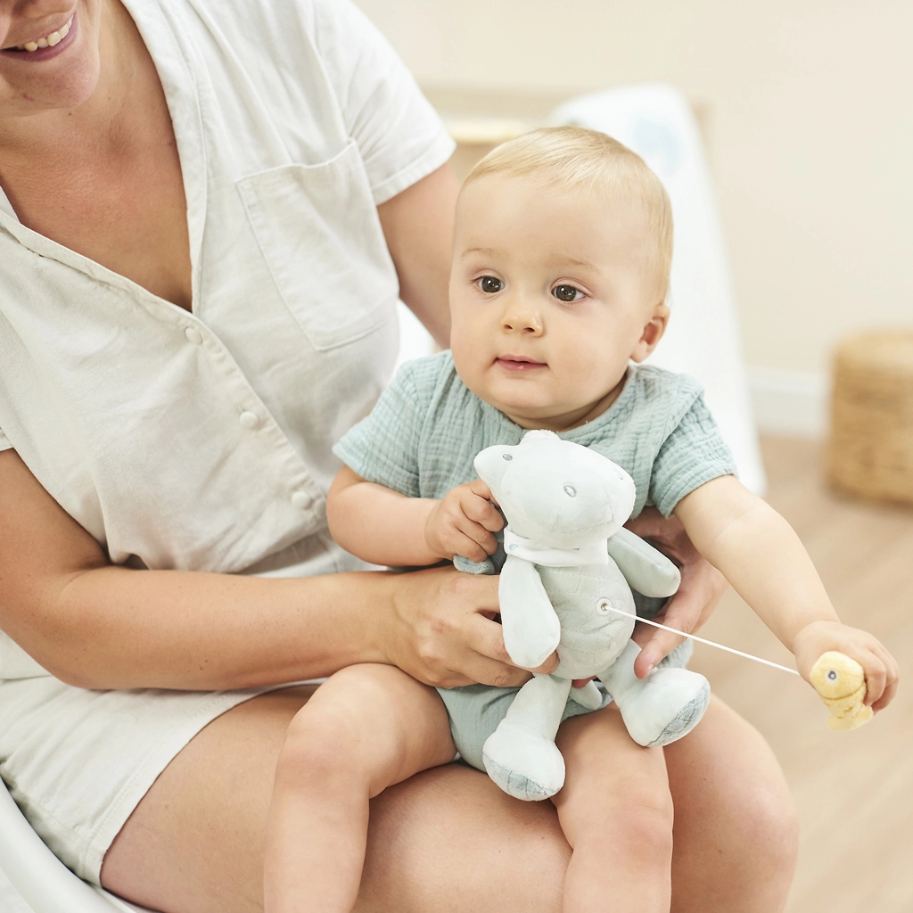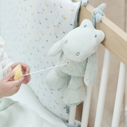 Na het trekken aan het koordje klinkt de zachte wiegmelodie La‑Le‑Lu, die je baby kalmeert en helpt makkelijker in slaap te vallen.