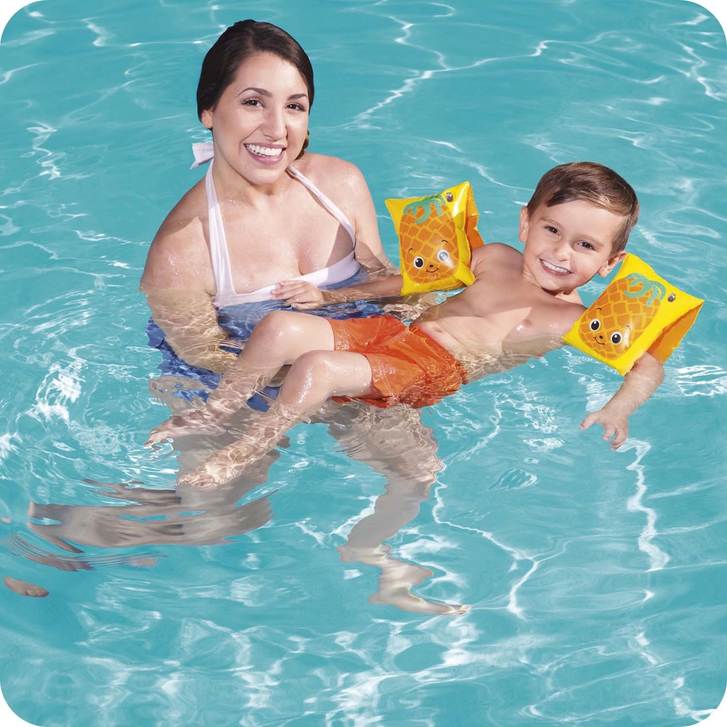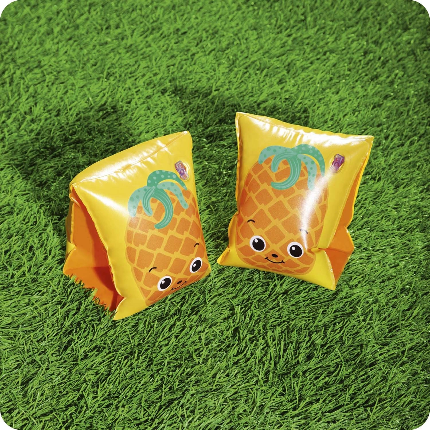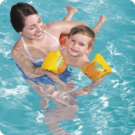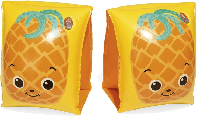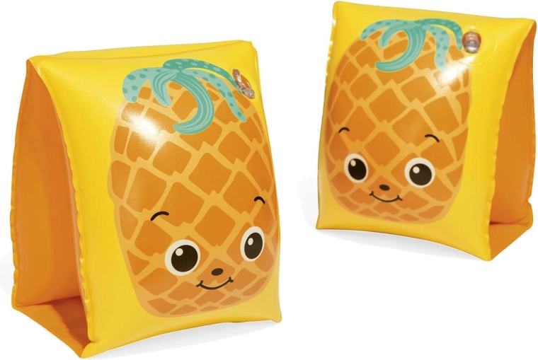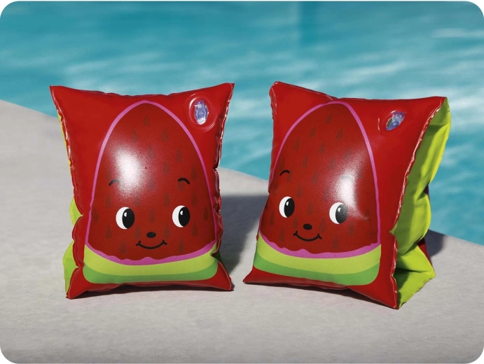 Ontdek waterpret met de opblaasbare BESTWAY zwemvleugels in fruitig design. Twee onafhankelijke kamers zorgen voor veilig drijfvermogen en comfort, terwijl de speelse watermeloen- en ananasmotieven kinderen motiveren om te leren zwemmen en in het water te spelen.