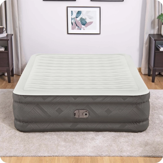 De geïntegreerde pomp op 220–240 V blaast het luchtbed in ongeveer 5 minuten op. Er is ook de mogelijkheid om een traditionele hand-/voerpomp te gebruiken.