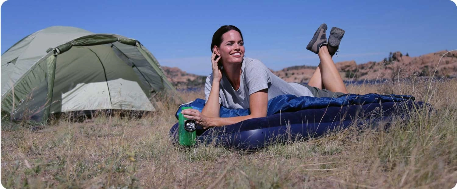 De handmatige zuigerpomp in de verpakking maakt eenvoudig en snel oppompen mogelijk, overal – thuis of onderweg.