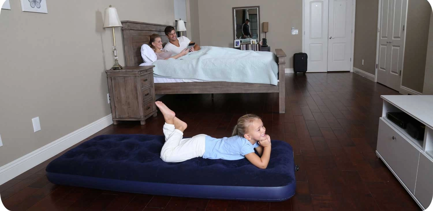 Geniet van comfortabel logeren voor gasten of op de camping. Het BESTWAY opblaasbare matras met aangenaam geflockt oppervlak is zacht aan de touch, slipvast en eenvoudig te onderhouden. Dankzij de coil-beam technologie met interne verbonden kamers is het matras gelijkmatig ondersteund en bestand tegen doorliggen.