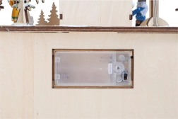 Stap binnen in de betoverende wereld van Kerst met onze houten adventskalender. Het prachtige kerstmarkttafereel is rijk aan details en verlicht met zacht licht dat je huiselijke sfeer verwarmt: