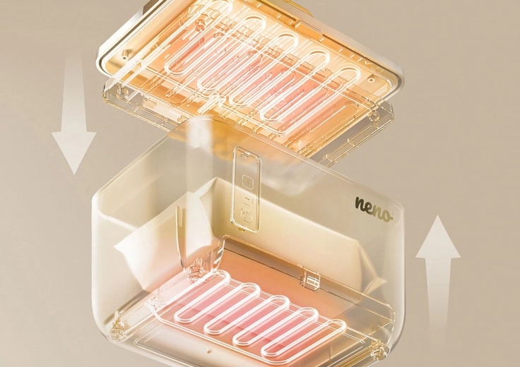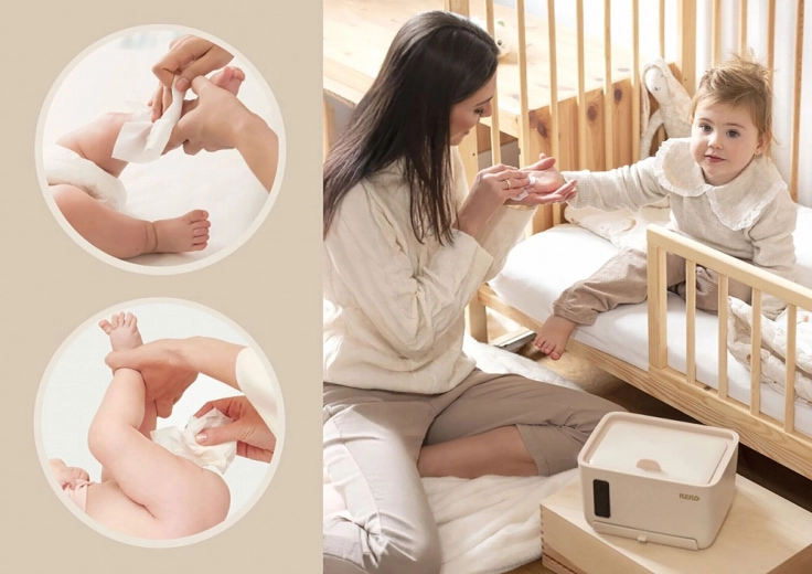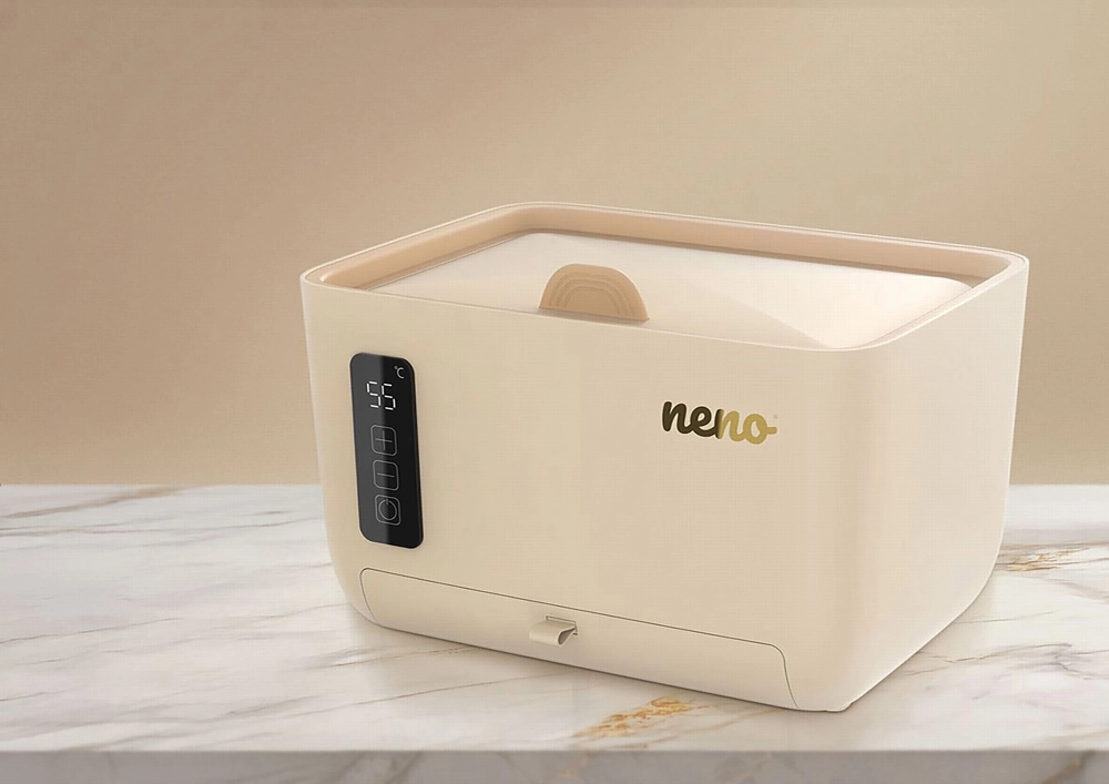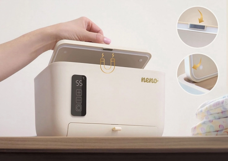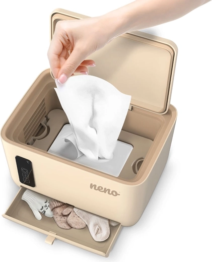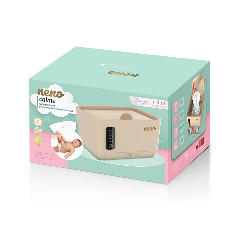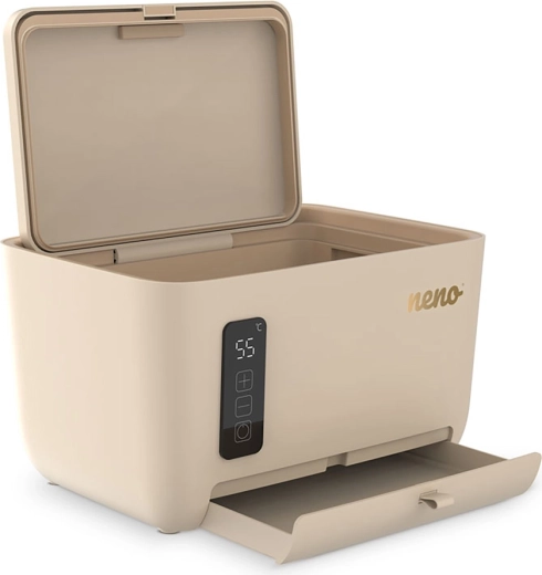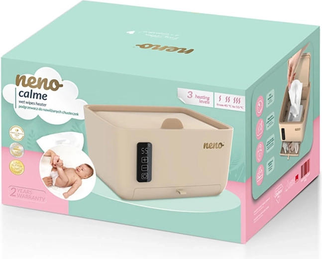 Geef je baby comfort bij elke verschoning. Neno Calme is een slimme verwarmer voor zowel vochtige als droge doekjes met instelbare temperatuur van 45–55 °C, die de ideale vochtigheid behoudt en irritatie van de gevoelige huid voorkomt. Hij biedt snelle opwarming, stille werking, een magnetische deksel met afdichting en een praktische accessoirelade – alles in een elegant, veilig ontwerp met touchbediening.