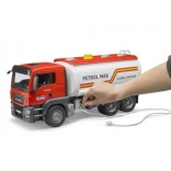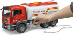 De MAN TGS tankwagen van Bruder is ideaal voor alle kleine liefhebbers van vrachtwagens. Dit voertuig heeft openende deuren en kantelbare zijspiegels, wat flexibel spel mogelijk maakt. Het innovatieve ontwerp omvat een handmatig bediend luchtpompje en een functionele rubberen slang op een haspel, wat zorgt voor een realistisch gevoel tijdens het spelen.