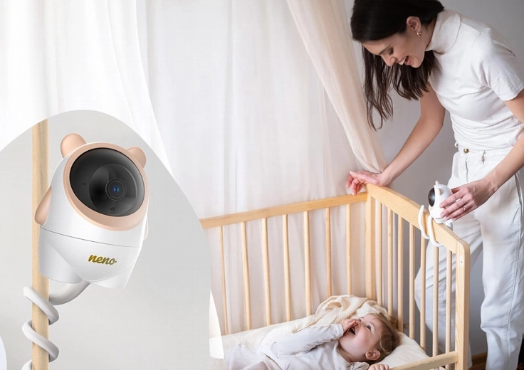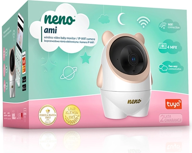 Neno Ami is een slimme video‑babyfoon die een schattig design combineert met geavanceerde technologie. Hij biedt gedetailleerde monitoring in 4 MP (2560 × 1440 px), vloeiende rotatie van de camerahoek en een brede 120° kijkhoek. Dankzij de nachtmodus met IR‑verlichting zie je wat er in de babykamer gebeurt, zelfs in het donker.