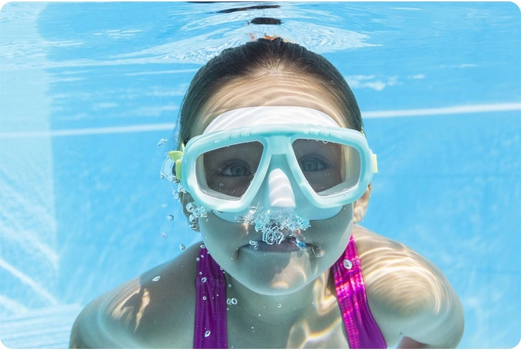 Geniet zorgeloos van het ontdekken van de onderwaterwereld met dit turkooizen Bestway-masker. Dankzij slijtvaste polycarbonaat lenzen met UV-bescherming, een zachte afdichtingsrand en een verstelbare siliconen band biedt het comfortabel draagcomfort, een breed gezichtsveld en betrouwbare bescherming van de ogen tegen water en zon. Universele maat en latexvrije materialen garanderen veilig en comfortabel gebruik voor de meeste zwemmers.
