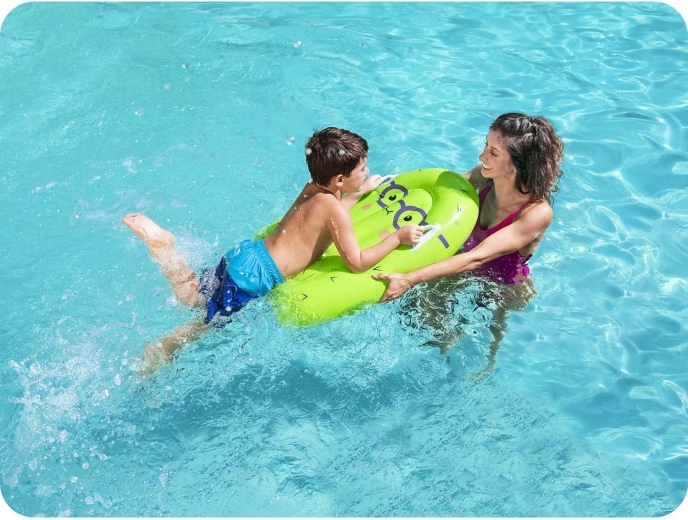 Dit stijlvolle opblaasbare board in ananasvorm is perfect voor eerste zwemproefjes, waterspelletjes en beenslagtraining met ondersteuning. Twee geïntegreerde handgrepen vergemakkelijken het vasthouden en helpen kinderen vertrouwen op te bouwen in het water. De compacte afmetingen van 84 × 56 cm en het lage gewicht maken het tot een ideale reisgenoot.