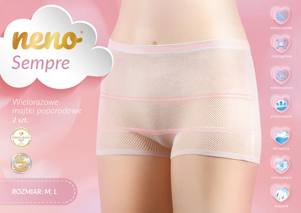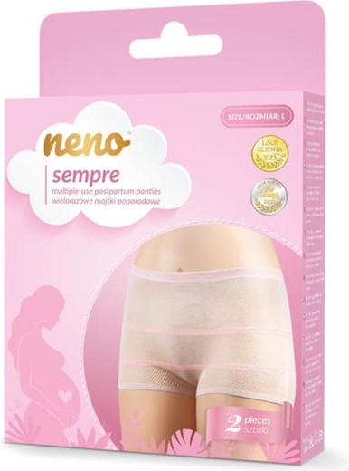 Postpartumbroekjes Neno Sempre zijn ademend, naadloos en licht elastisch voor dagelijks comfort in de kraamperiode. Ze houden kraamverbanden betrouwbaar op hun plaats, hebben een hoge taille voor zachte bedekking van het litteken na een keizersnede en kunnen hergebruikt worden als milieuvriendelijker alternatief voor wegwerpbroekjes.