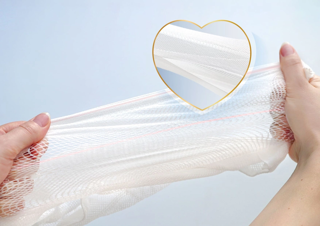 De zachte, elastische constructie zonder storende naden minimaliseert wrijving en druk, en vermindert zo het risico op irritatie of drukplekken.