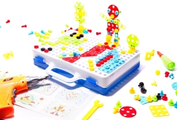 Fantastische constructieset voor de kleine klusjesman! De set bevat 237 stukken waarmee verschillende vormen en modellen gemaakt kunnen worden. Kinderen kunnen spelen met kleurrijke schroeven en met behulp van de boormachine ervaren hoe het is om een echte bouwer te zijn.