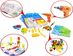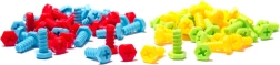 De set bevat kleurrijke schroeven en onderdelen die kinderen aanspreken en helpen bij de ontwikkeling van hun motorische vaardigheden.