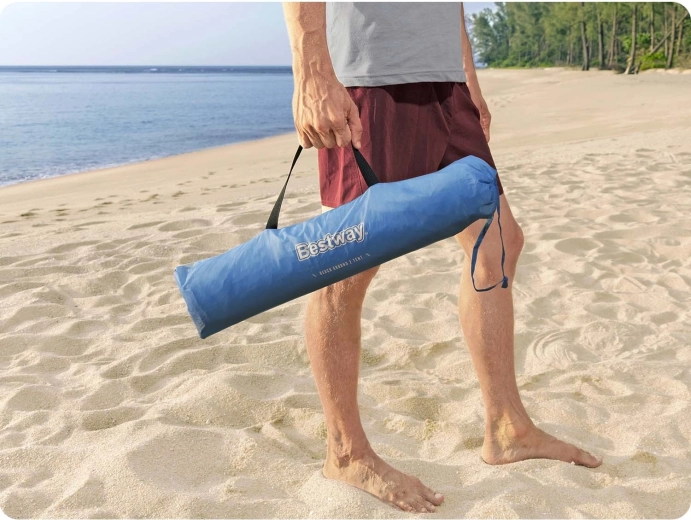Geniet van comfort en veiligheid op het strand met de Bestway Beach Ground 2 strandtent. De duurzame 190T polyester met PA-coating 300 mm en de hoge UV-bescherming UPF 80+ beschermen tegen de zon en lichte regen, terwijl de open voorzijde zorgt voor luchtcirculatie. Dankzij de glasvezel stokken is de constructie flexibel, stabiel en snel klaar voor gebruik.