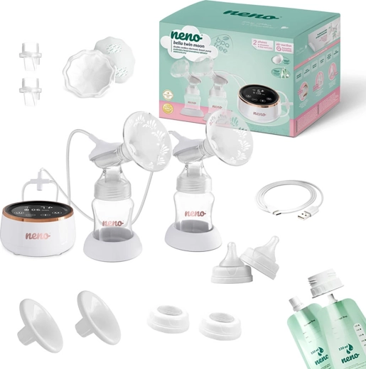 Neno Bella Twin Moon is een betrouwbare elektrische borstkolf die is ontworpen voor maximaal comfort en efficiëntie. De twee-fasen DuoComfort‑technologie stimuleert zacht de melkstroom en maakt vervolgens diep, effectief kolven mogelijk. Dankzij automatisch en handmatig wisselen pas je het kolfverloop eenvoudig aan jouw behoeften aan, zowel thuis als onderweg.
