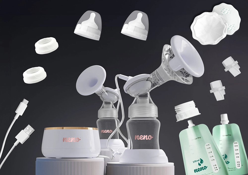 In de verpakking vind je een luxe set accessoires, waaronder flessen, spenen, doppen, opvangcontainers, melkzakjes en zoogkompressen – alles wat je nodig hebt voor comfortabel voeden en kolven.