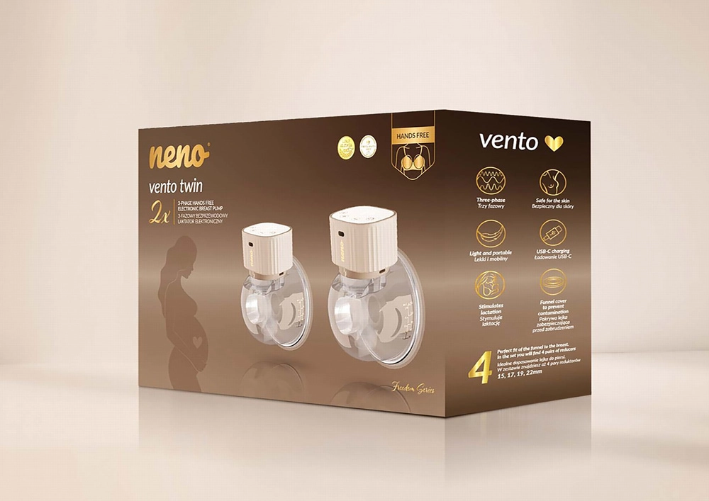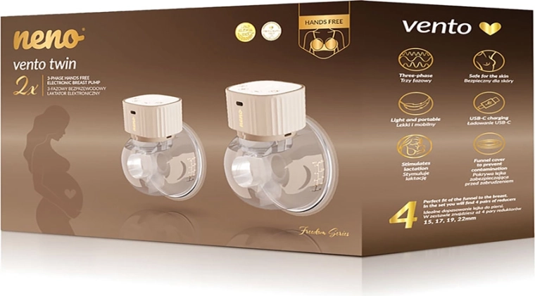 Geniet van bewegingsvrijheid en efficiënt kolven met de Neno Vento Twin. Het compacte ontwerp past in de beha en maakt echt discreet en comfortabel handsfree kolven mogelijk, altijd en overal. Drie fijn afgestemde modi – stimulatie, diep afkolven en gecombineerd – imiteren het natuurlijke voedingsritme, ondersteunen het op gang brengen en behouden van de melkproductie en bieden 9 intensiteitsniveaus voor zowel zachte als krachtigere prestaties.