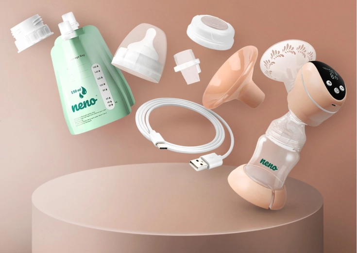 De slimme en compacte elektrische borstkolf NENO Primo biedt 2 kolfstanden (stimulatie en diepe afkolfstand), tot 9 intensiteitsniveaus, comfortabele bediening met knoppen en geheugen van de laatste instelling. Licht, draadloos en gemakkelijk mee te nemen – ideaal voor onderweg. De siliconen inzet is zacht voor de huid en het apparaat is BPA-vrij.