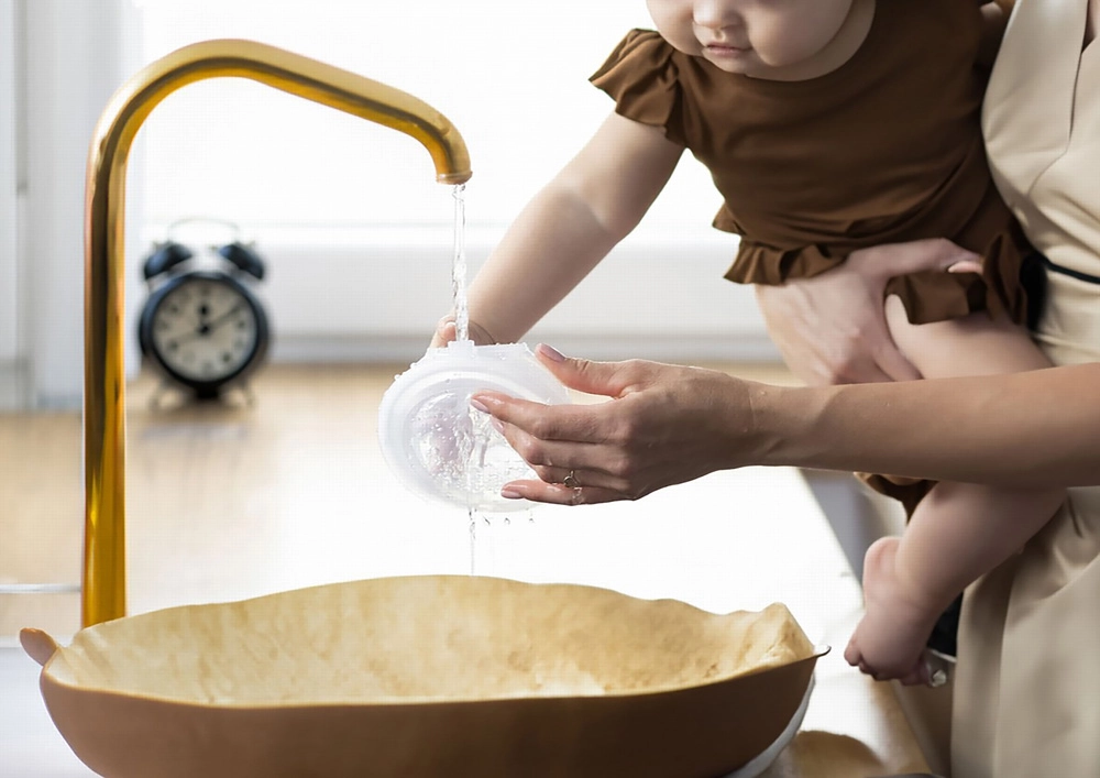 De gesloten constructie voorkomt terugstroom en contact van melk met het mechanisme. Onderdelen zijn gemakkelijk te demonteren voor wassen en steriliseren in kokend water of een sterilisator.