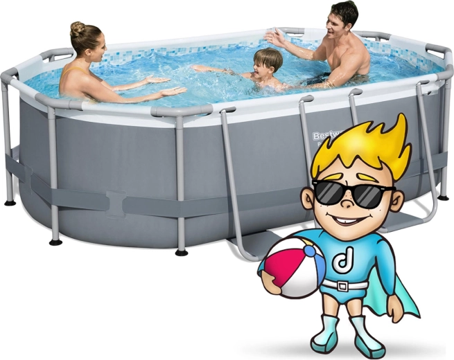 Geniet volop van de zomer met het ovale, bovengrondse BESTWAY Power Steel zwembad van 305 × 200 × 84 cm in een complete set. Het stabiele stalen frame, duurzame 3-laagse PVC-bekleding met mozaïekinterieur en een filterpomp zorgen voor schoon en aangenaam water voor het hele gezin. In de verpakking vind je een afdekzeil en ondergrondzeil, chemie met doseerder, schepnet, thermometer en opblaasaccessoires – alles wat je nodig hebt voor direct zwemplezier.