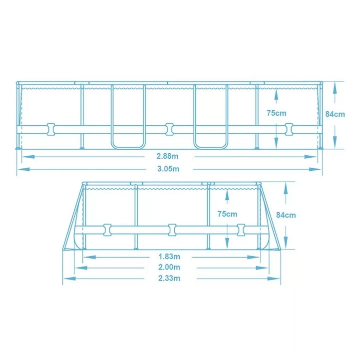 De Power Steel-constructie met metalen buizen en 3-laags PVC met mesh zorgt voor hoge stevigheid, scheurweerstand en een lange levensduur van het zwembad.