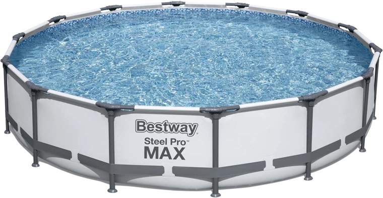 Het drielaagse PVC-materiaal, versterkt met nylongaas, is scheur- en doorprikbestendig en het interieur met blauw-wit mozaïekeffect geeft het water een frisse uitstraling. De montage gebeurt gereedschapsloos in drie stappen: mantel uitrollen, frame monteren, water vullen – klaar in een mum van tijd.