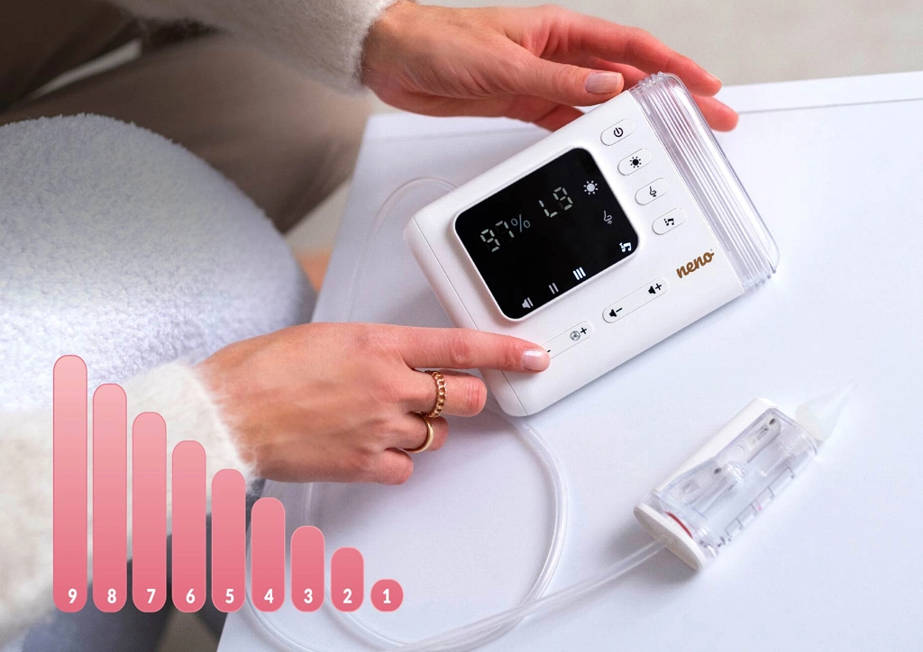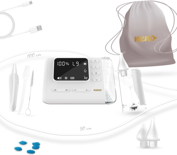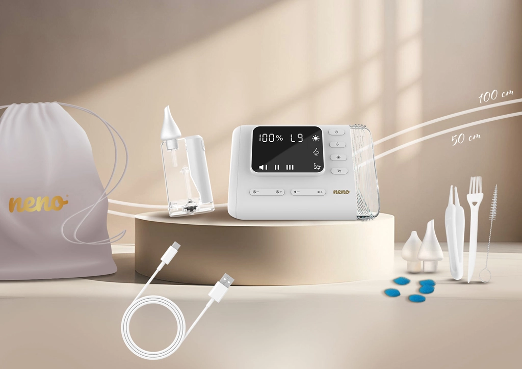 Verlicht verkoudheidsklachten bij kinderen snel en hygiënisch. Neno Nariz combineert krachtige maar zachte zuigkracht met dynamische luchtstroom, zodat slijm effectief wordt verwijderd zonder de gevoelige slijmvliezen te irriteren. Dankzij 9 vermogensniveaus stem je de zuigkracht eenvoudig af op de dikte van het secreet en de actuele toestand van verkoudheid of allergie. Twee zuigtechnieken – direct contact of lichte afstand – verhogen het comfort van het kind.