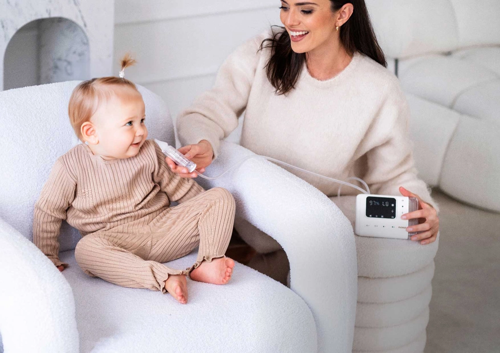 Zuig ook tijdens de slaap dankzij een geluidsniveau van ≤65 dB. De LED-achtergrondverlichting helpt bij gericht gebruik en melodieën met white noise kalmeren je kindje.
