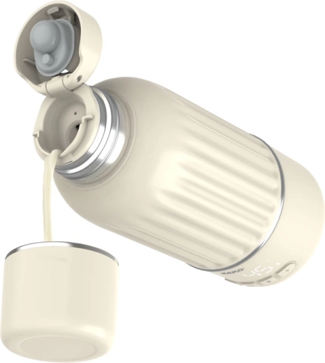 Het praktische ontwerp met geribbelde behuizing voor een zekere grip, een ergonomische tuit voor schoon schenken zonder druppels en een deksel dat als glas kan worden gebruikt, bespaart ruimte in de tas. Nevio is ideaal voor het verwarmen van moedermelk, water voor babyvoeding en favoriete dranken zoals thee of koffie. Een voorreinigingsmodus op 65 °C helpt bij het hygiënisch doorspoelen van de binnenkant vóór gebruik.