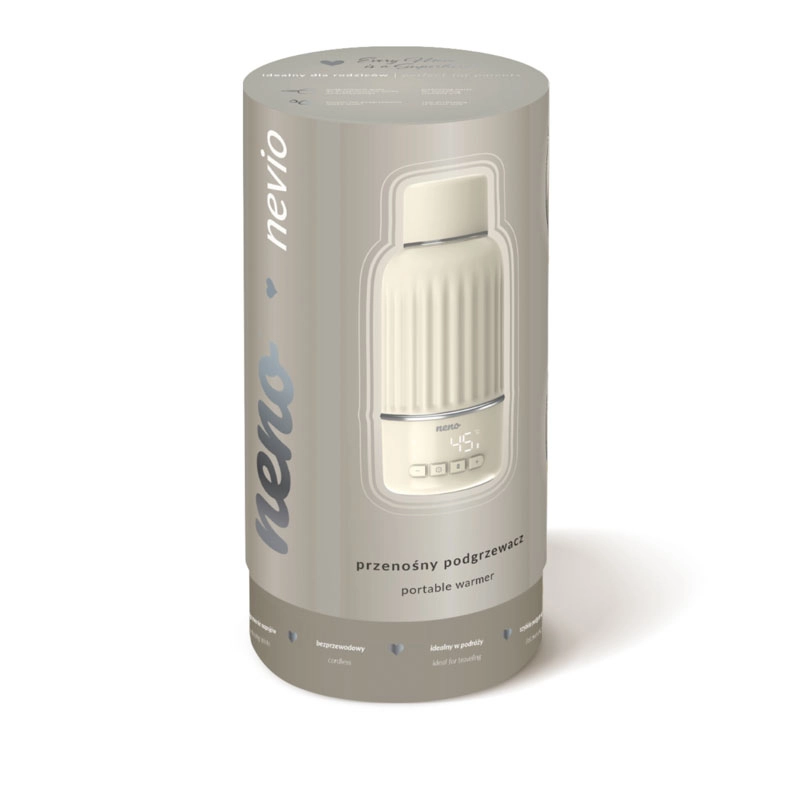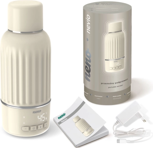 Maak kennis met Neno Nevio – een compacte en draagbare flessenwarmer die zorgt voor snelle verwarming en nauwkeurige temperatuurregeling van 35–55 °C met een nauwkeurigheid van 1 °C. Dankzij de capaciteit van 500 ml, de ergonomische tuit en de dubbele afdichting is hij ideaal voor thuis en onderweg. Een praktisch deksel dat ook als glas dient en snel opladen maken van Nevio een betrouwbare hulp voor melk en andere dranken.