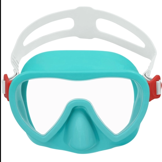 De turkooize BESTWAY duikbril is ideaal voor zwemmen in het zwembad en ondiep snorkelen. De duurzame polycarbonaatlens met UV-filter beschermt de ogen tegen de zon en biedt helder zicht onder water. De zachte afdichtrand sluit comfortabel aan op het gezicht en minimaliseert lekkage.