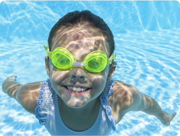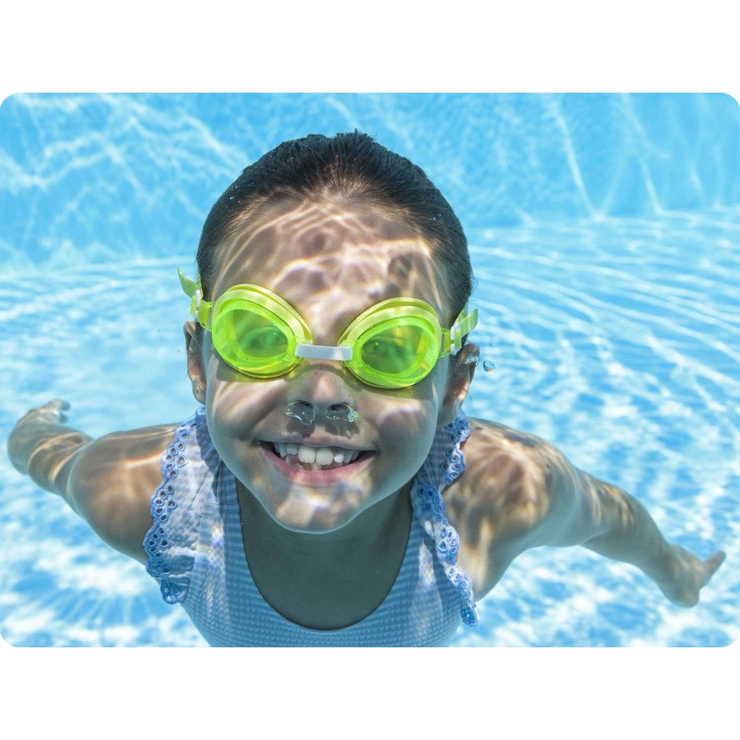 Lichte en comfortabele kinderzwembril van Bestway in het groen zorgt voor een helder zicht onder water en bescherming dankzij UV-bestendige lenzen. De zachte, siliconen band is volledig verstelbaar voor een veilige en comfortabele pasvorm, zonder latex – ideaal voor kinderen vanaf 7 jaar.