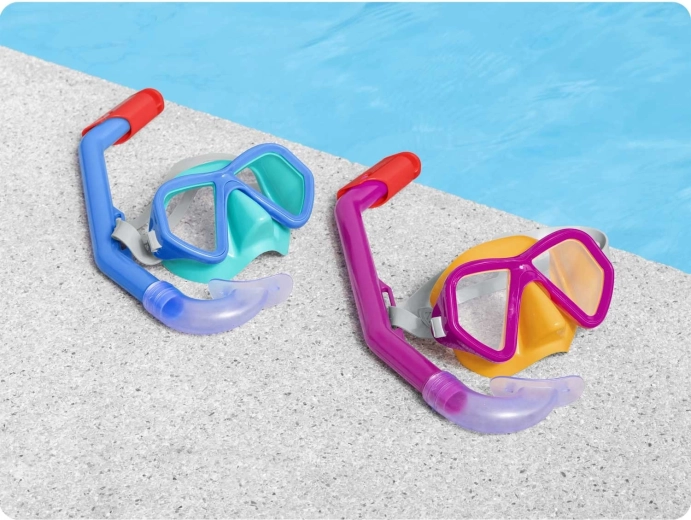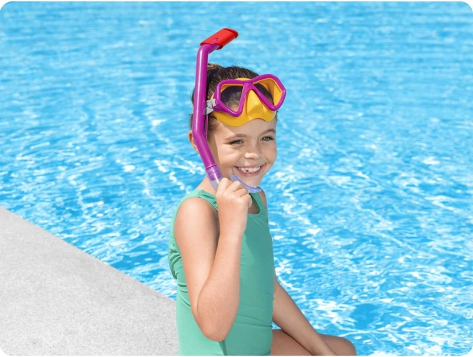 Deze lichte en kleurrijke BESTWAY snorkelset brengt kinderen en jonge zwemmers plezier bij het ontdekken van de onderwaterwereld. Het masker met polycarbonaat lenzen en UV-bescherming biedt een helder, breed zicht en dankzij de zachte afdichting en de verstelbare siliconen band zit het perfect op het gezicht zonder vervelend lekken.