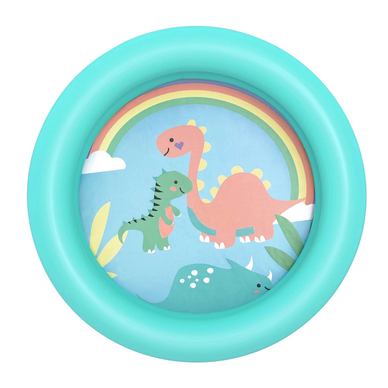 De stabiliteit wordt gewaarborgd door 2 robuuste luchtcirkels die de vorm behouden en omkiepen voorkomen. Zachte bodem en wanden zorgen voor comfort tijdens het spelen en zitten, terwijl de bonte dinosaurusprint van elk spatmoment een leuk avontuur maakt. Ook zonder water te gebruiken – vul het met ballen en je hebt direct een speelhoek voor binnen.
