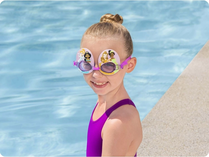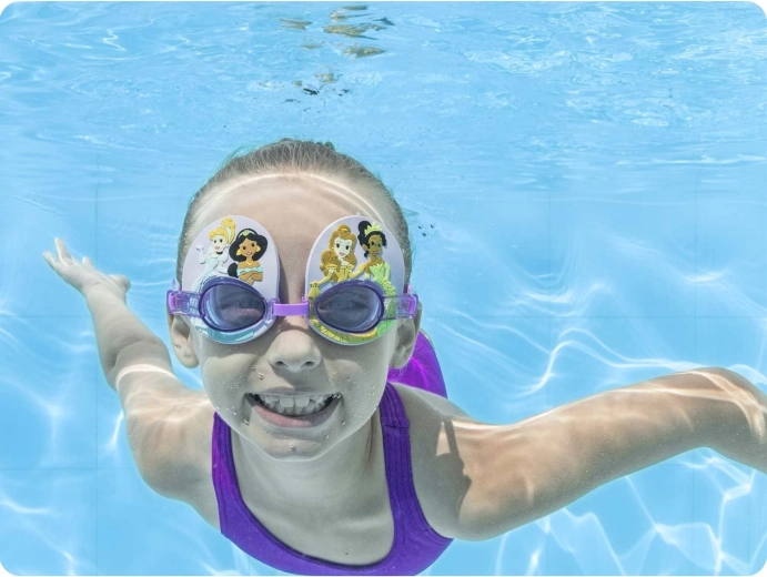 De kinderzwembril PRINCESS van Bestway combineert een speels design met praktische oogbescherming. Heldere lenzen bieden goed zicht onder water, terwijl het UV-filter de ogen buitenshuis beschermt. Comfortabele zachte randen en een verstelbare siliconenband zorgen voor een stabiele en milde pasvorm.