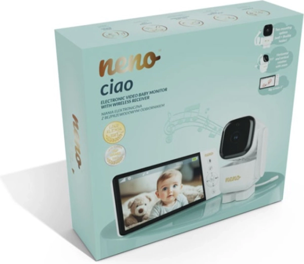 De slimme Neno Ciao babyfoon geeft je gemoedsrust dankzij een 5" kleurendisplay, een draaibare Pan & Tilt-camera (355°/90°), nachtzicht, tweewegcommunicatie en VOX-technologie voor energiebesparing. De zender heeft een bereik tot 300 m, een temperatuursensor, 8 rustgevende slaapliedjes en een ontvanger met een gebruiksduur tot 12 uur op de ingebouwde 5000 mAh-batterij.