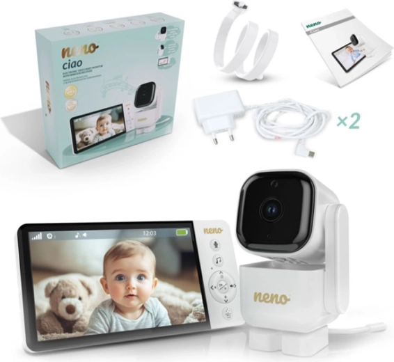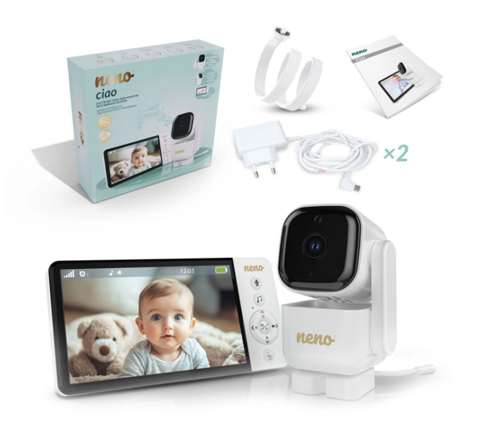 Houd toezicht op je baby, thuis en in de tuin. De Neno Ciao babyfoon combineert een scherp 5" display (480 × 854 px) met een Pan & Tilt-draaicamera, zodat je met één tik de hele kamer bestrijkt. Nachtzicht tot 5 m garandeert een helder beeld na zonsondergang en dankzij tweewegcommunicatie kun je je kindje geruststellen met je eigen stem.