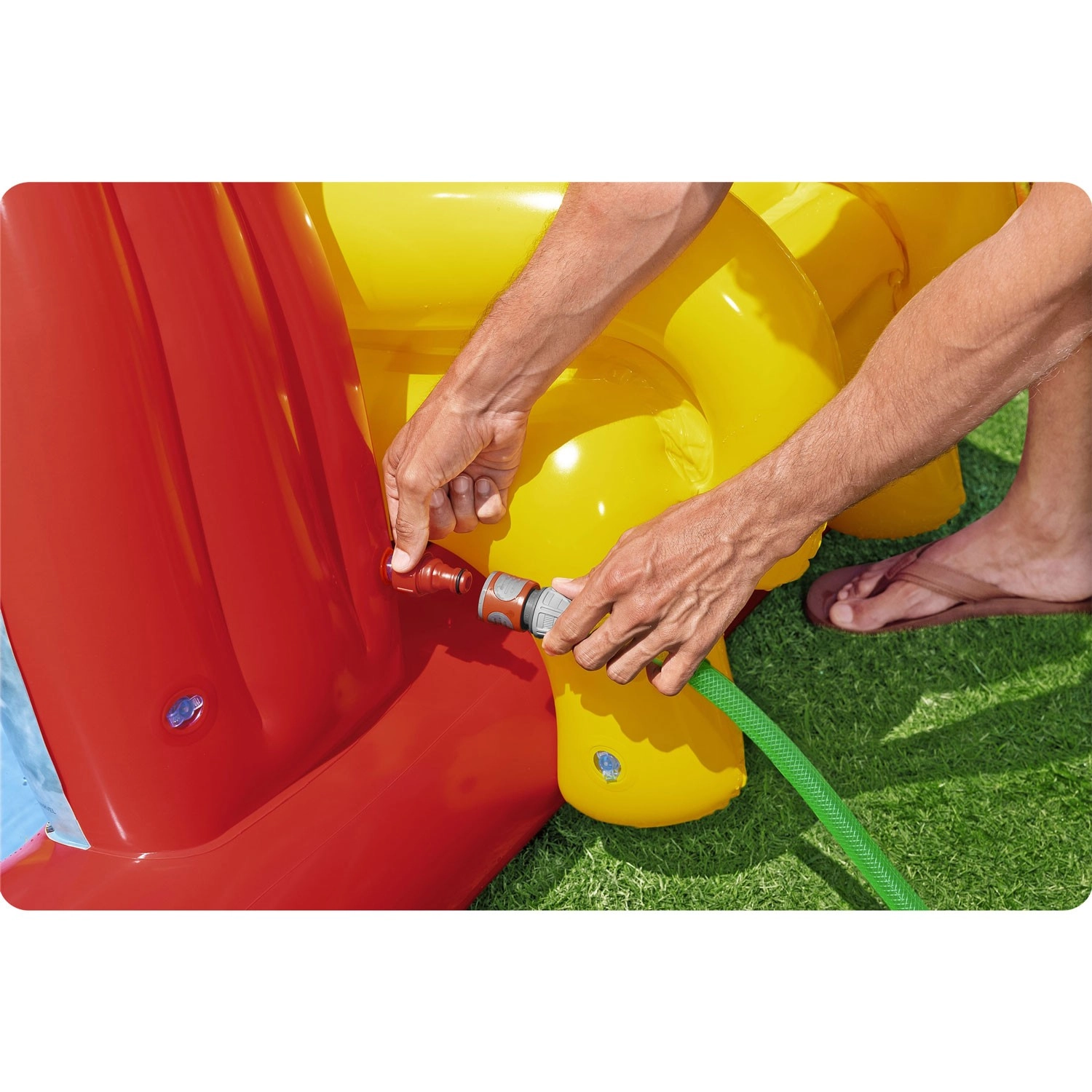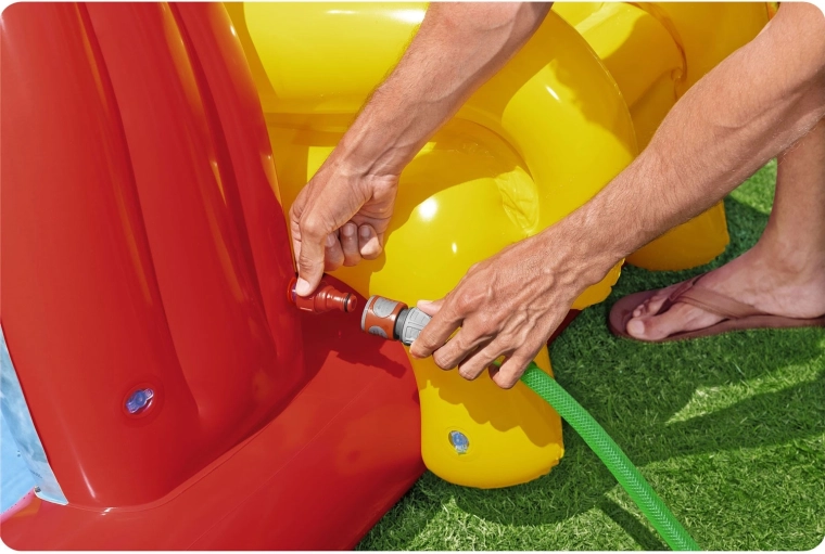 - Waterpret: mogelijkheid om op de tuinslang aan te sluiten voor verfrissende sproei- en glijfuncties.