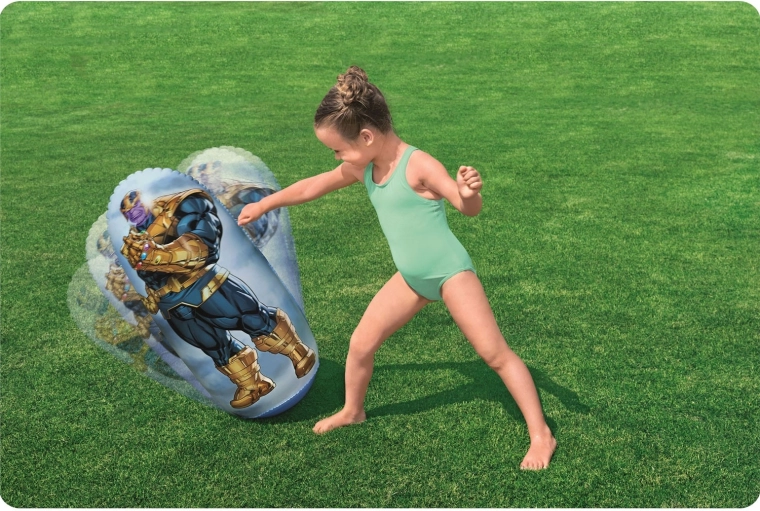 Oefen je nauwkeurigheid met ringwerpen en laat energie los met de opblaasbare zelfoprichtende Thanos – actievol plezier voor kleine MARVEL‑fans.